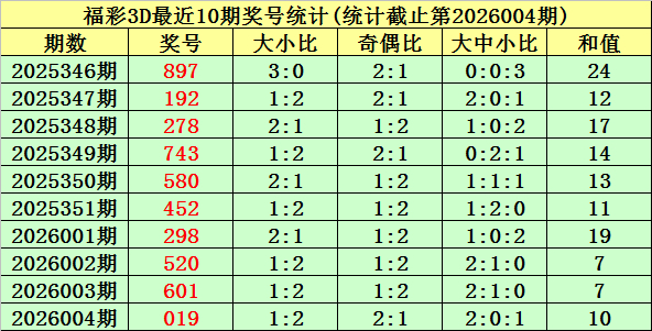 开奖转头:福彩3D第2026004期奖号为:019。奖号类型为组六,和值为10广州市常胜网计算机科技有限公司,奇偶比为2:1,跨度为9,012路比为2:1:0,大小比为1:2。